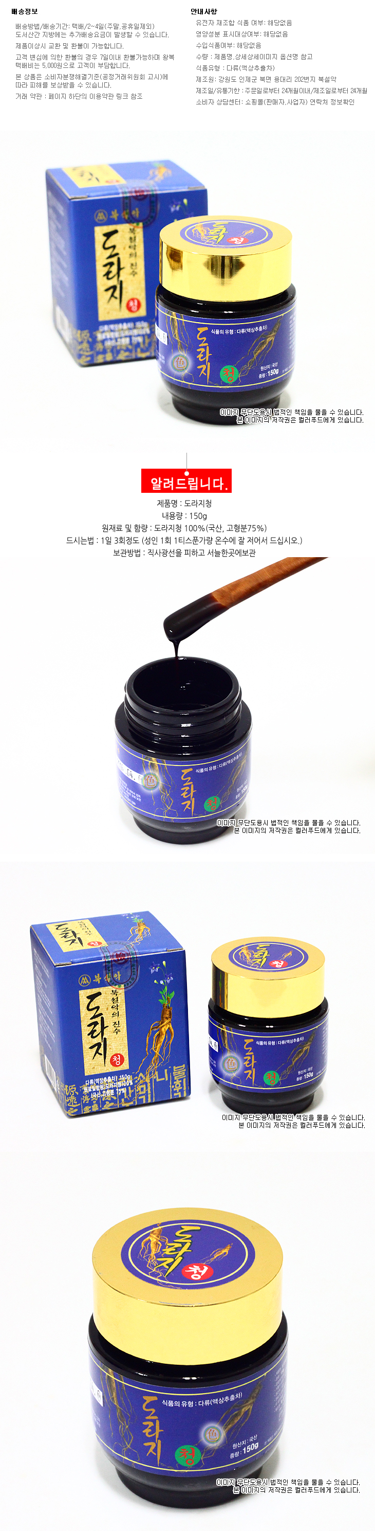 북설악 도라지청 국산 150g